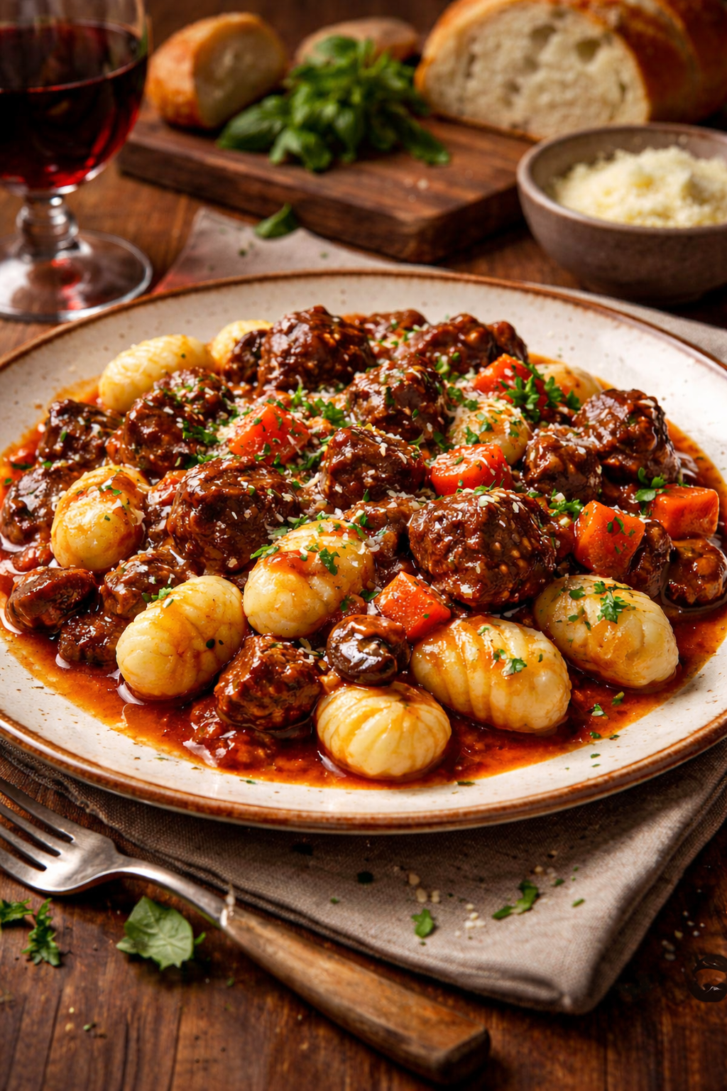Gnocchi ¨selbstgemacht¨con estofado